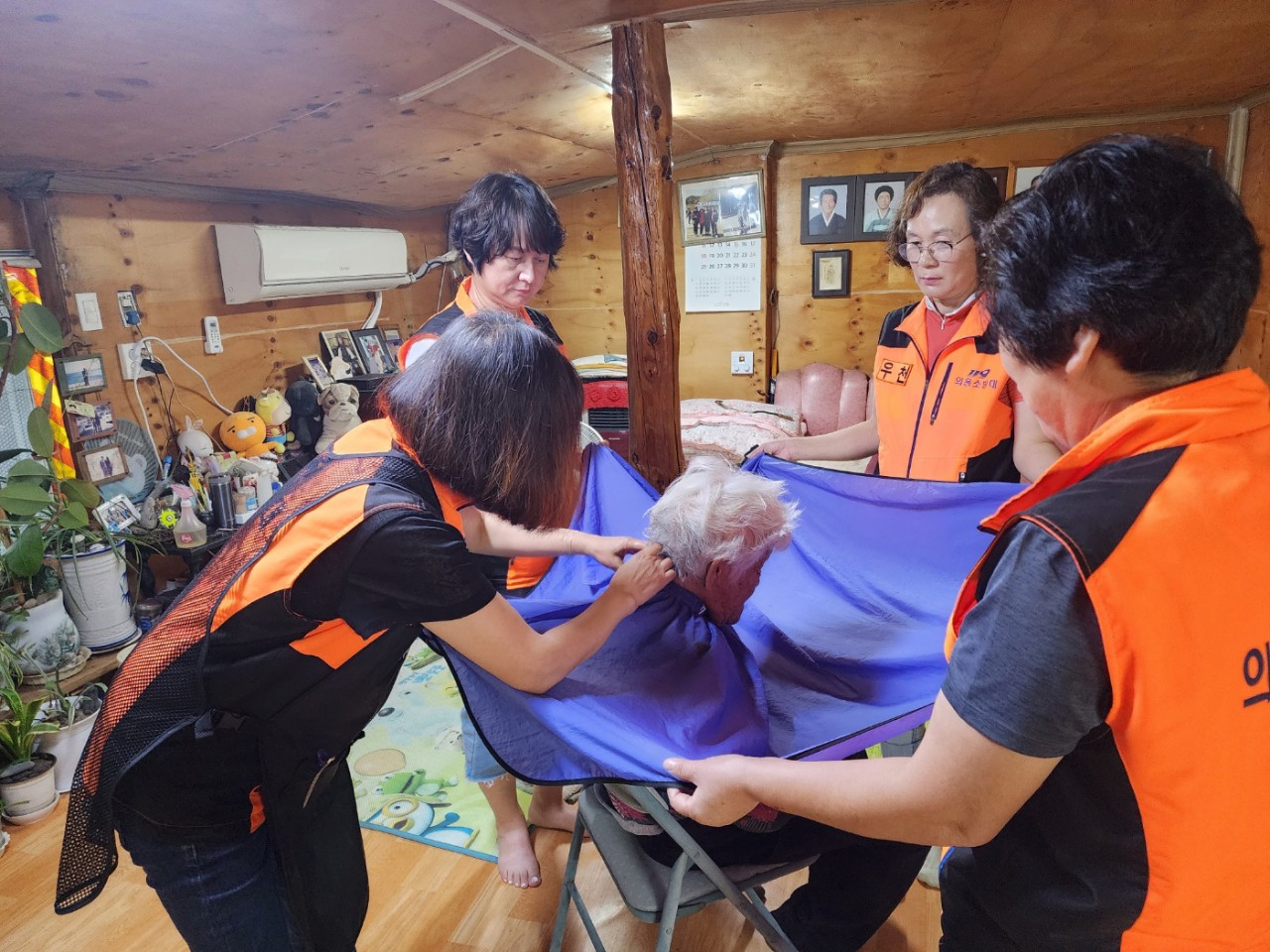 9월 5일 우천여성의용소방대는 우항리, 오원리에 계신 어르신들을 뵙고 미용봉사 활동을 했습니다.