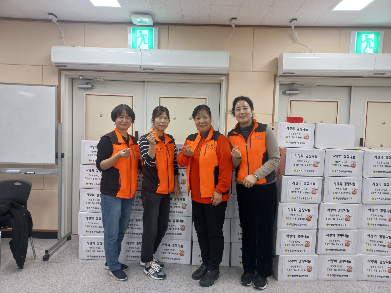 여러 기관과 단체 봉사원들이 모두 모여 맛있게 김치를 만들었는데 특히 우리 우천여성의용소방대원들이