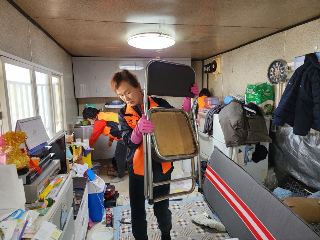 대원들은 땀 흘리며 집안 곳곳 청소하여 어두컴컴하고 복잡했던 공간이 환하고 쾌적하게 바뀌었습니다.