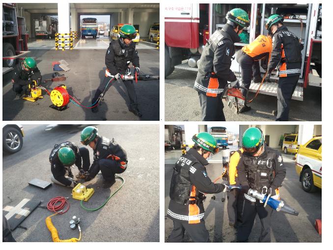 오전에는 소방장비에 대한 사용법과 오후에는 구조장비 숙달훈련을 실시하였습니다