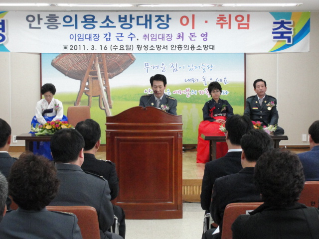의용소방대장 이취임(김근수 이임대장, 최돈영 취임대장)행사를