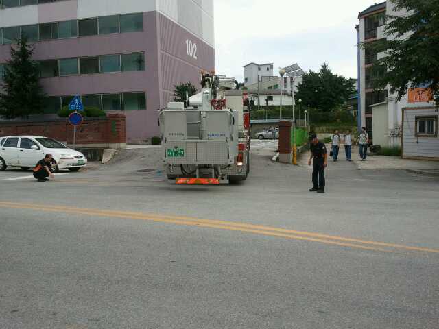횡성소방서(서장 조근희) 횡성119안전센터에서는 2011년 08. 23(화) 관내 아파트를 방문하여 진입로 및 굴절차 전개공간을 확인 점검하였습니다. 관계자들에게 유사시 초기진화 및 대피훈련 요령, 진입로 확보 등도 재차 교육하였고, 특히 원활한 화재진압을 위해 금광포란재아파트의 옥내소화전연결살수설비 앞 주차라인을 없애도록 하였습니다.