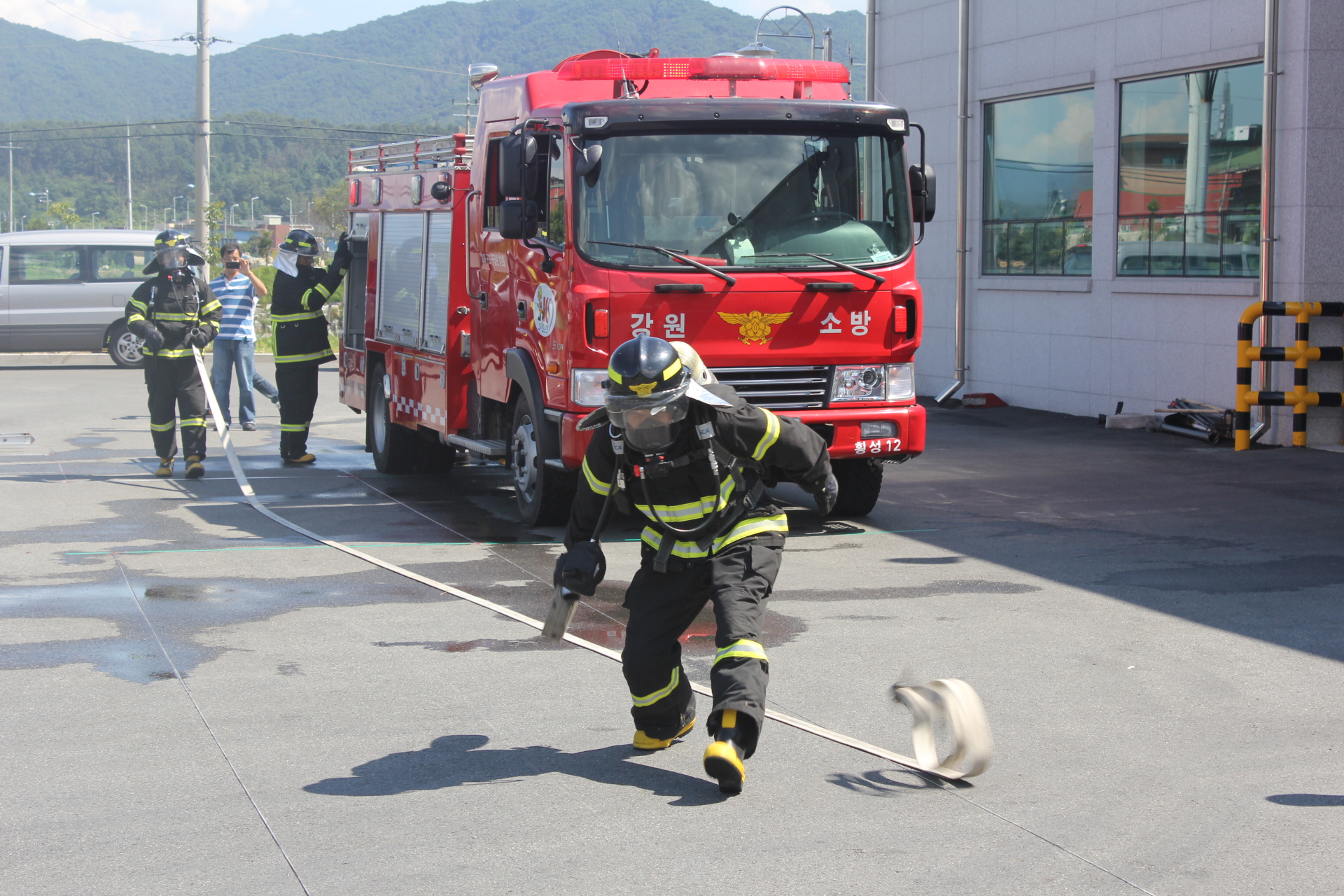 무더운 날씨에도 불구하고 소방전술 시연을 준비하여 주신 직원 여러분께 감사드립니다. 아울러 전 소방서에서는 철저한 준비를 통하여 9월22일에 열리는 강원도 소방전술경연대회에서 좋은 성적을 거두시길 바랍니다.