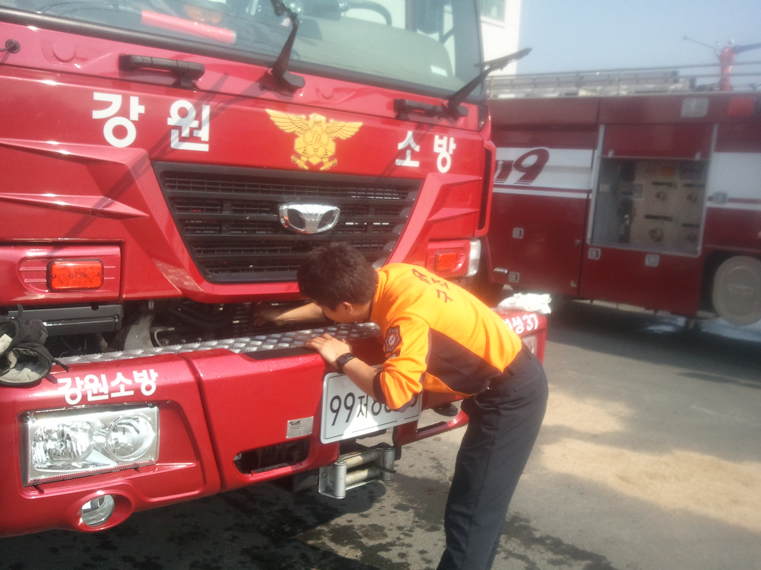즉각적인 출동태세를 완비하고 구조, 구급 및 재난현장에 신속하고 효과적으로 대응하기위한 제1의 조건을 출동차량정비로 두고 있는바 매일 교대직전 및 일일 수시로 출동차량 점검을 실시한다고 밝혔다.