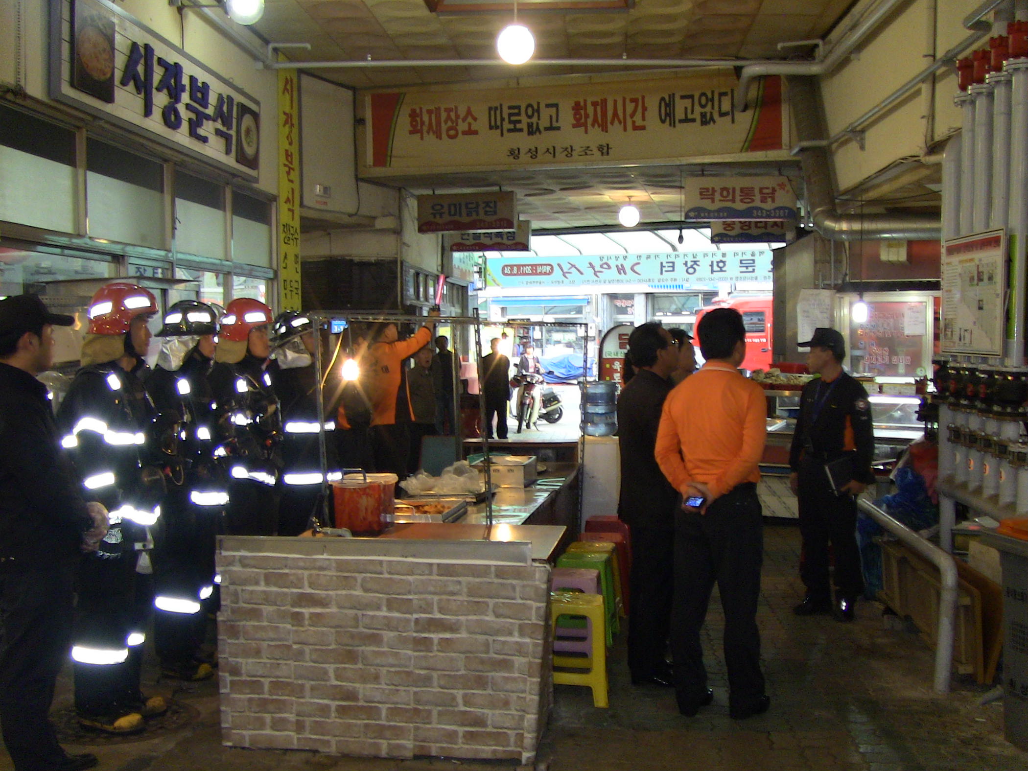 횡성소방서(서장 조근희) 현장지휘대에서는 10.13 17시경에 횡성시장 내 임의로 상점을 정하여 불시출동훈련 및 관계자 대상으로 소방시설 사용법 교육을 실시하였습니다. 재래시장은 한번 불이 발생하면 대형화재로 확대될 우려가 있기에 평소 상인들이 비상소화전의 위치 및 사용법 숙달이 중요합니다. 앞으로 지속적인 진압훈련 및 화재예방교육을 통하여 우리지역 전통시장을 지켜나가겠습니다.