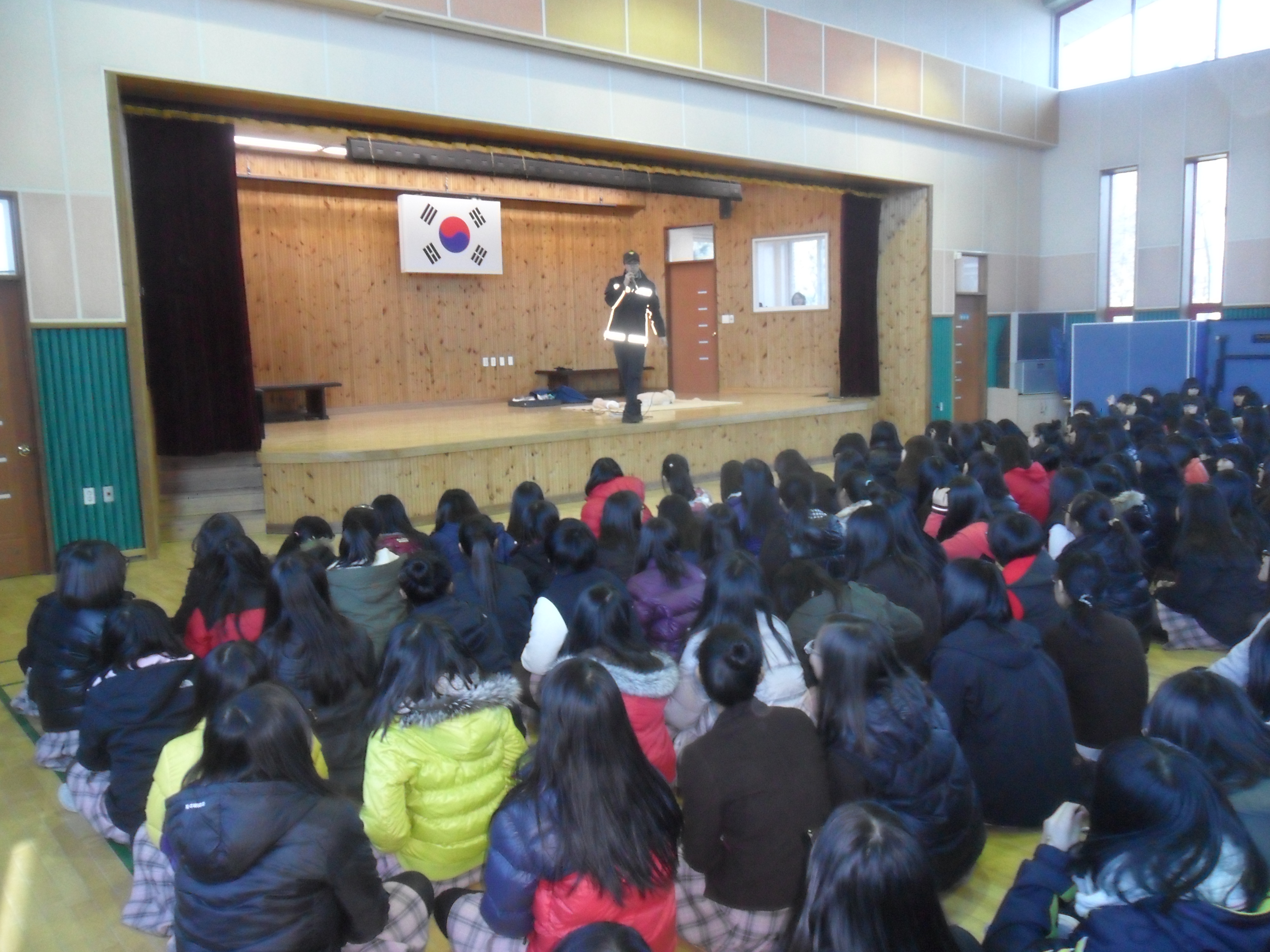 횡성소방서(서장 조근희) 횡성119안전센터에서는 11월24일(목) 전 국민 CPR 확대보급을 위한 CPR 퍼레이드와 관련하여 대동여중학생들과 선생님을 대상으로 CPR 교육 및 체험을 실시하였습니다. 326명의 학생들과 8명의 선생님들이 강당에 모여 구급대원의 CPR강의를 경청하였습니다.
