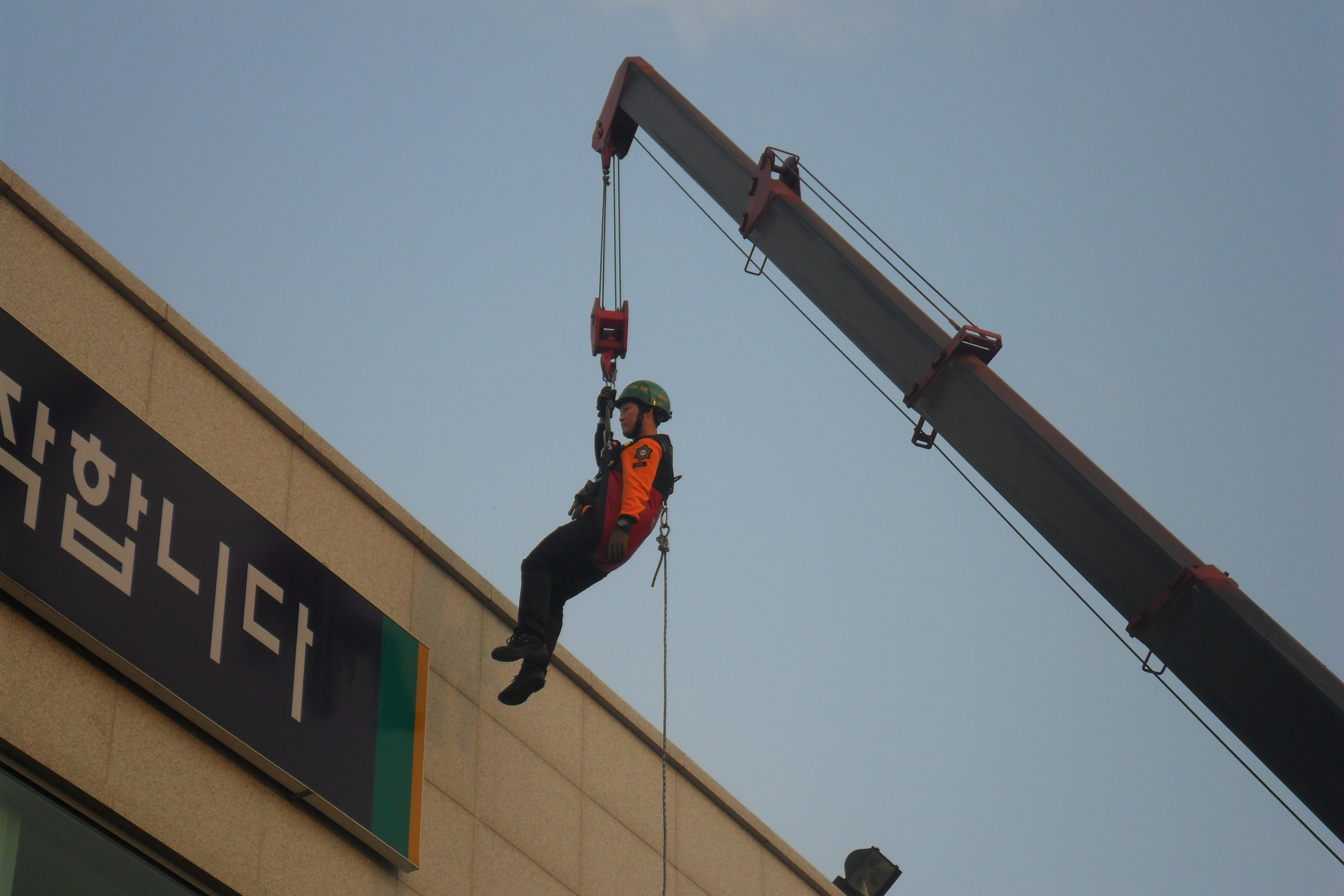 이날 훈련에서는 구조대원들이 서로 번갈아 가며 구조대원과 요구조자가 되어 장비조작 및 구조시 요구조자가 느낄수있는 위험요소를 파악해 보는데 중점을 맞처 훈련을 실시하였다.