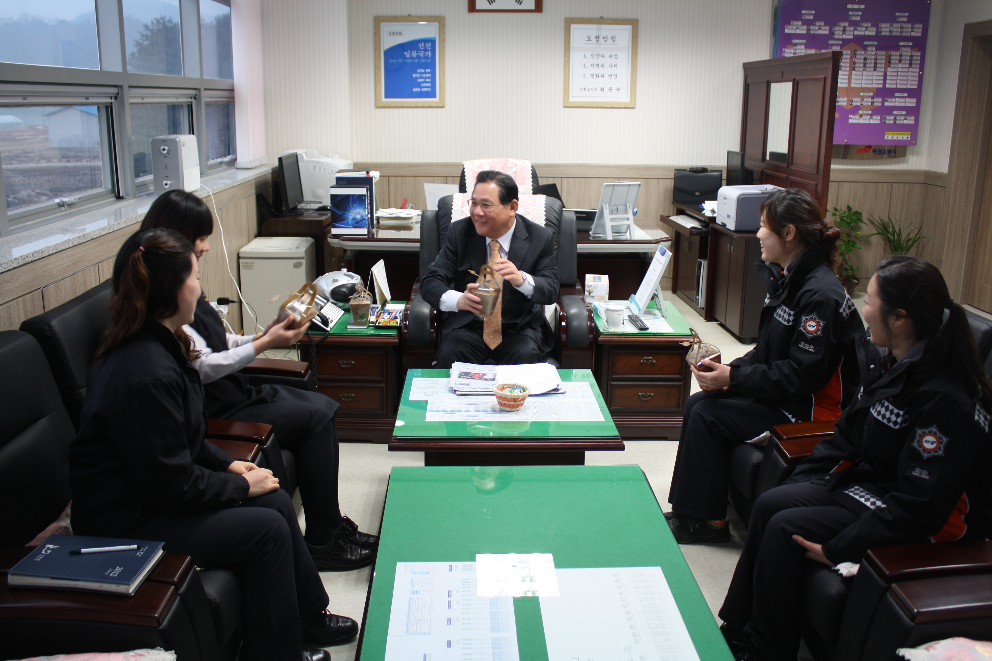 횡성소방서(서장 조근희)는 3월14일 화이트데이를 맞이하여 여직원에게 사탕을 전달하며 격려하였으며, 달콤한 사탕처럼 조직내 맡은바 임무에 충실히 해줄것을 당부했다