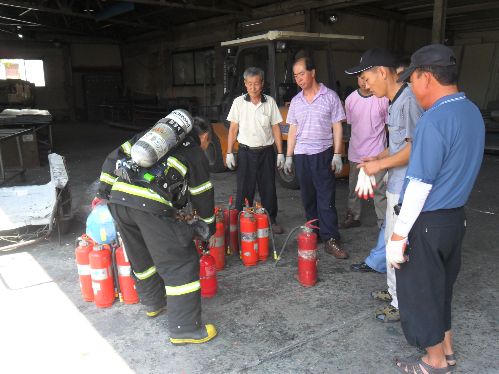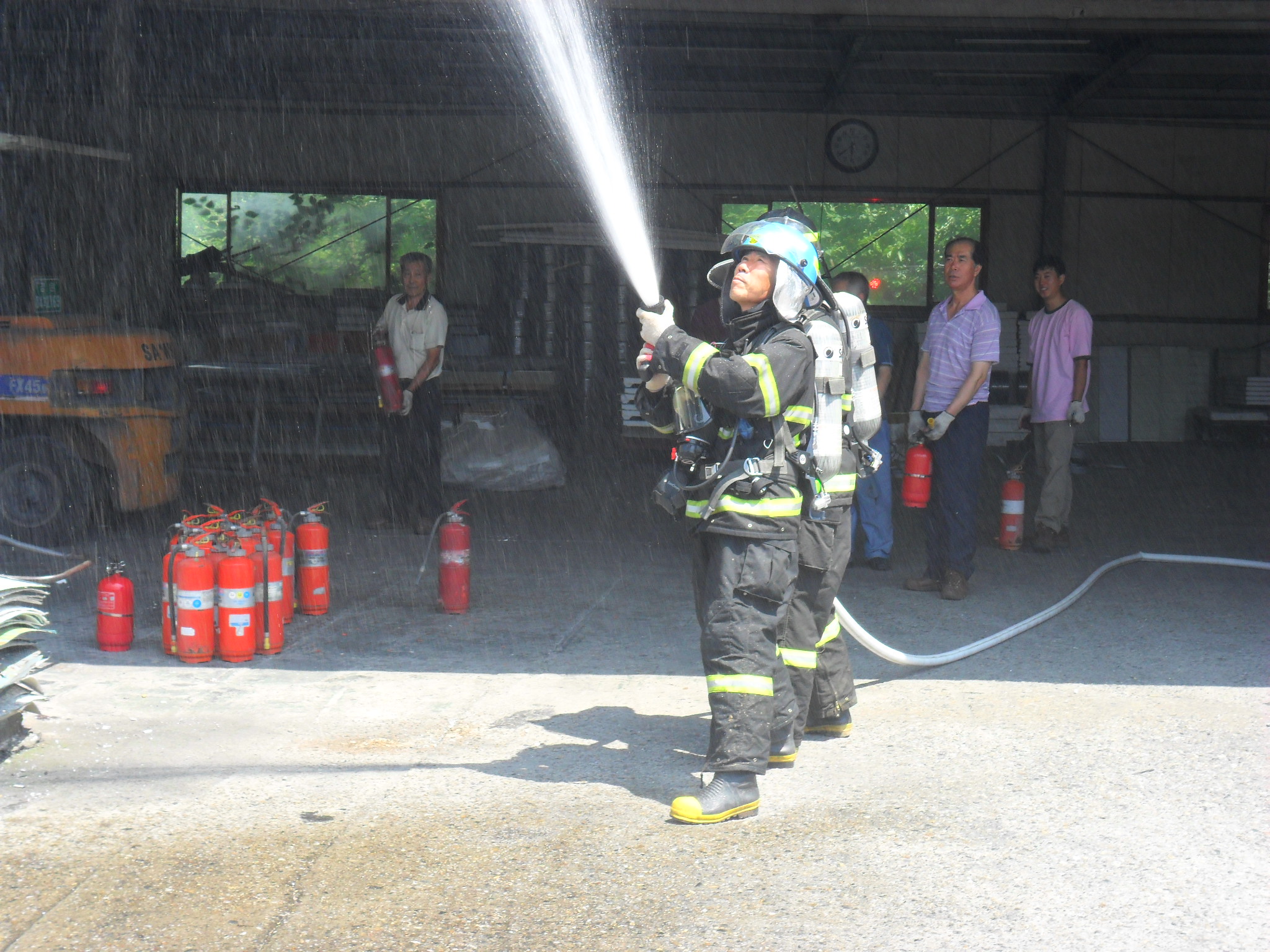 무더운 여름에도 소방훈련은 계속된다.