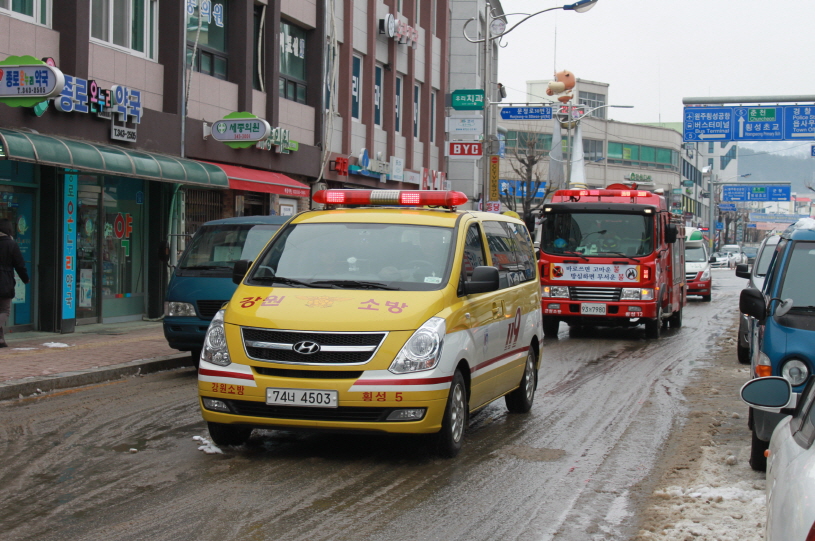 횡성소방서(서장 정은철)는 설명절을 앞두고 소방차 출동시 진입장애가 우려되는 횡성시장에서 소방?의용소방대?자위소방대 및 횡성군청 등 유관기관 단체 60여명이 참여하여 전통시장 가상화재 불시출동 및 현지적응훈련 실시와 함께 소방차 길터주기 대 군민 홍보 캠페인을 실시하였다.