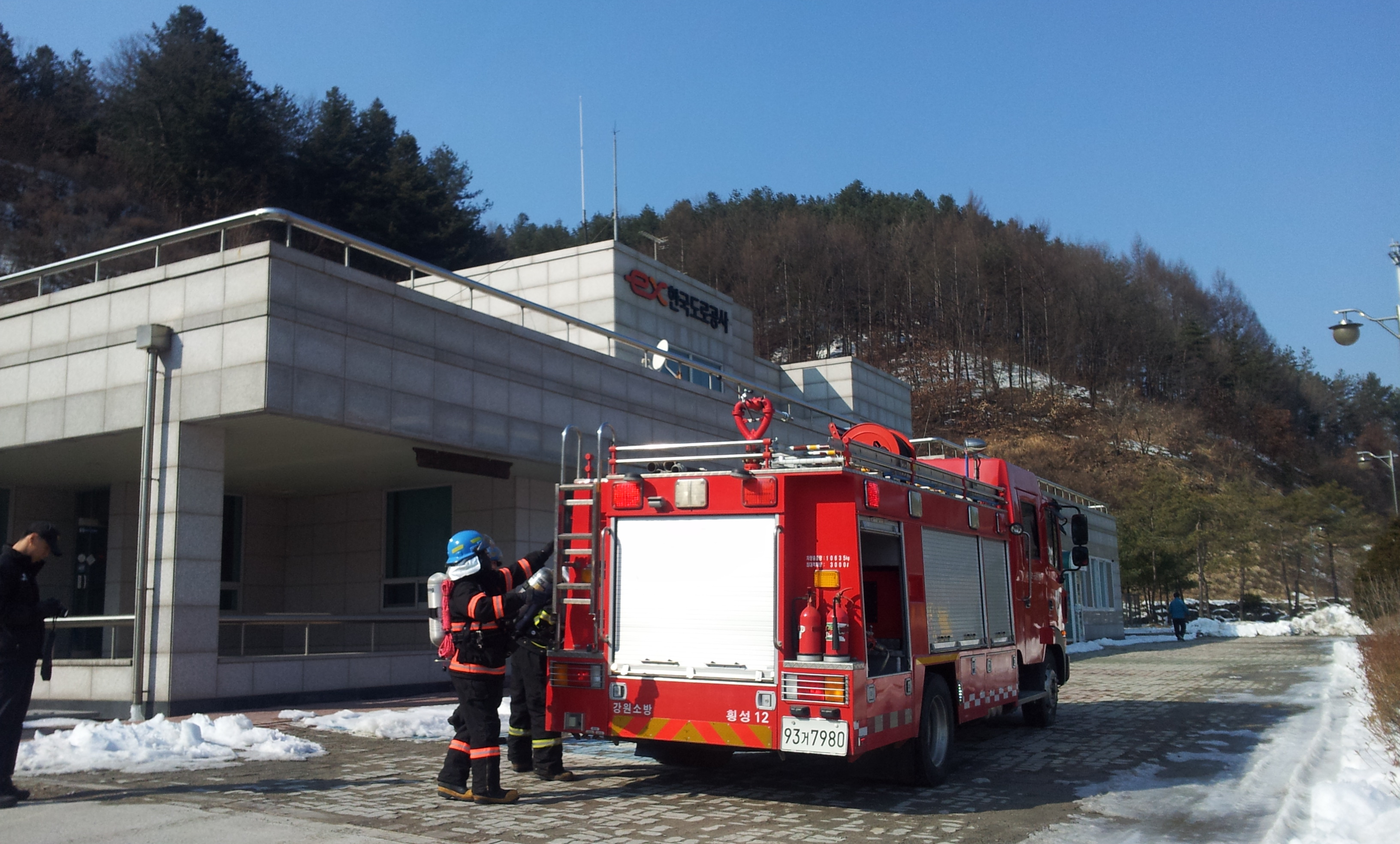 횡성소방서(서장 정은철) 방호구조과 구조진압대에서는 2013년2월13일 14:00시경 횡성읍 학곡리에 위치한 공공기관(한국도로공사 횡성영업소)현지적응훈련을 실시하였습니다. 가상화재진압 및 인명검색,환자이송등 출동대 현지적응훈련후 관계자 화재안전점검, 화재시 대피 및 신고 요령, 소화기 사용법 등을 교육하였습니다.