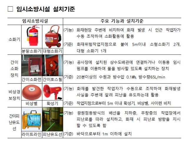 임시소방시설 종류, 설치대상 현장 및 면제기준에 대해 참고하시기 바랍니다.