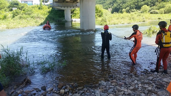 횡성소방서(서장 유중근)은 25일 갑천면 대관리 대관대교에서 물놀이안전사고에 대비하여 인명구조훈련 실시했다.