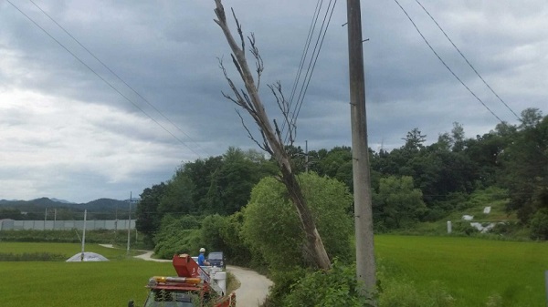 전신주에 고사목 전도 조치 큰 피해 막아