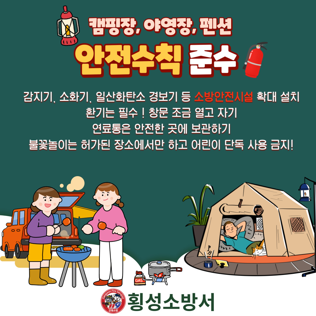 3대 전기용품, 캠핑장등 안전수칙, 화목보일러 안전수칙 등
