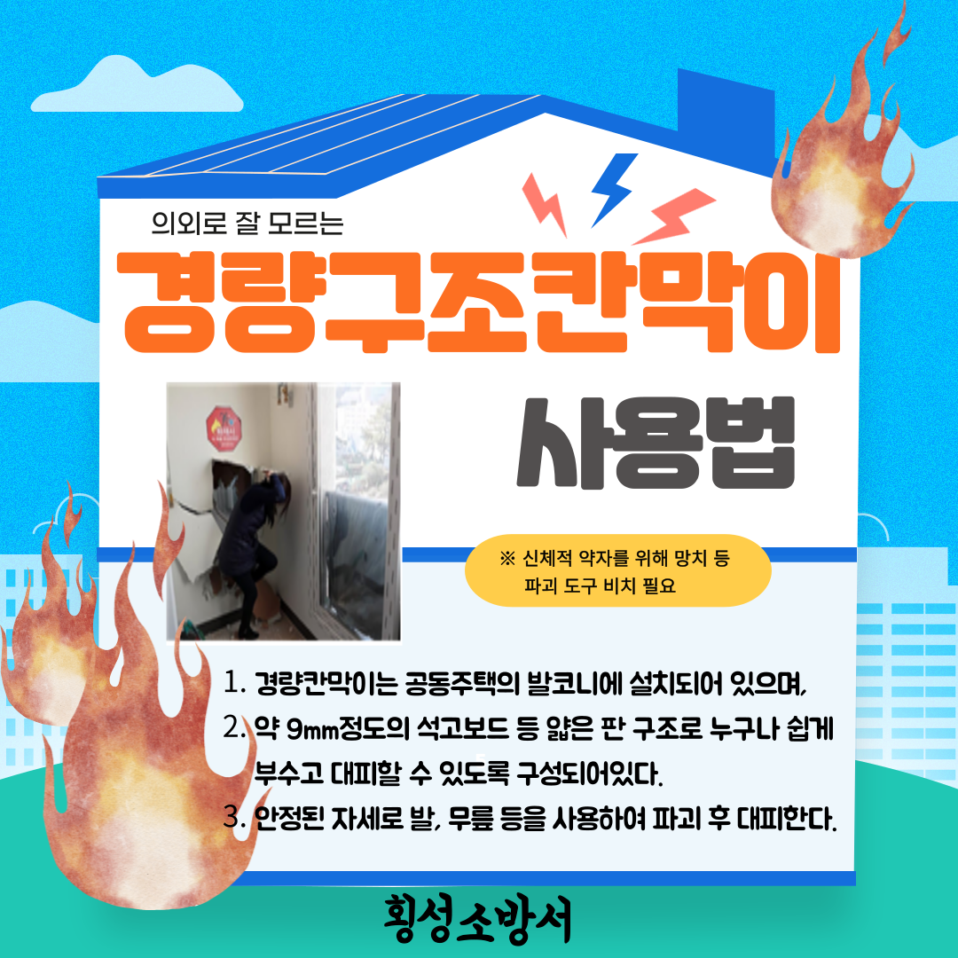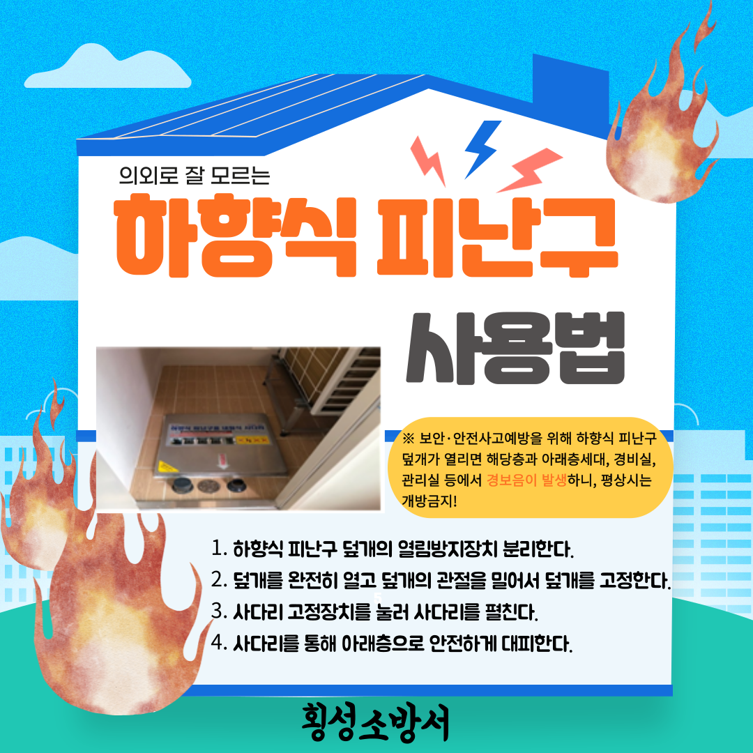 피난기구의 위치와 사용방법을 숙지하여, 나와 가족의 안전을 먼저 확보한 뒤 신고하세요!