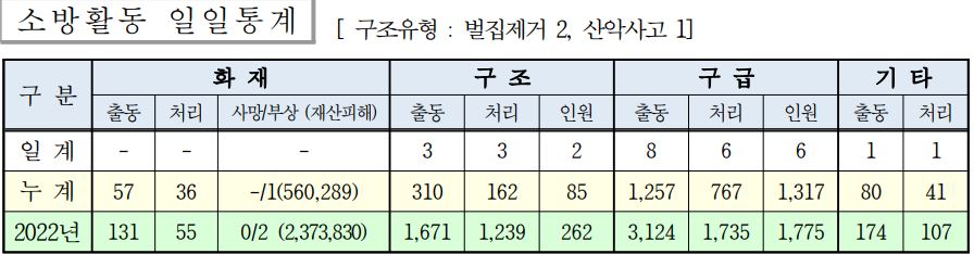 ○ 구조 3건(벌집제거 2,기타안전사고 1)
