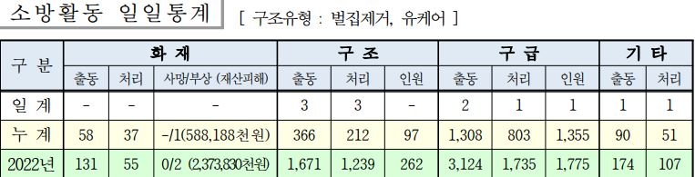 ○ 구조 3건(벌집 3,)