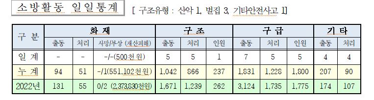 ○ 기타 4건(예방경계 3, 민원출동 1)