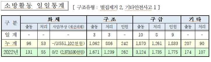 ○ 구조 3건(벌집 2, 기타안전사고 1 )