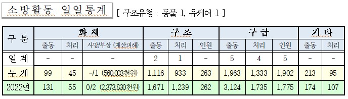 ○ 구조 2건(동물 1, 유케어 1)