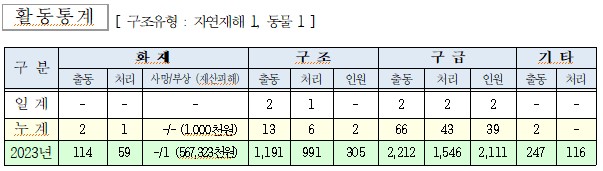 ○ 구조 2건(자연재해 1, 동물 1)