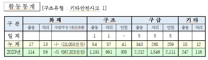 ○ 구조 1건(기타안전사고 1)