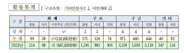 ○ 구조 2건(기타안전사고 1, 자연재해 1 )
