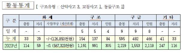 ○ 구조 4건(산악사고3, 교통사고1, 동물구조1)