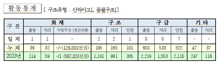 ○ 구조 2건(산악사고1 동물구조1)