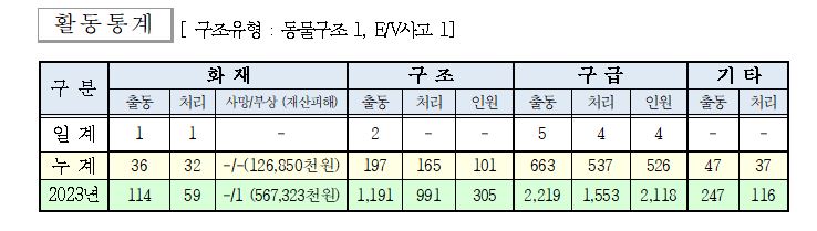 ○ 구조 2건(동물구조1, E/V사고 1)