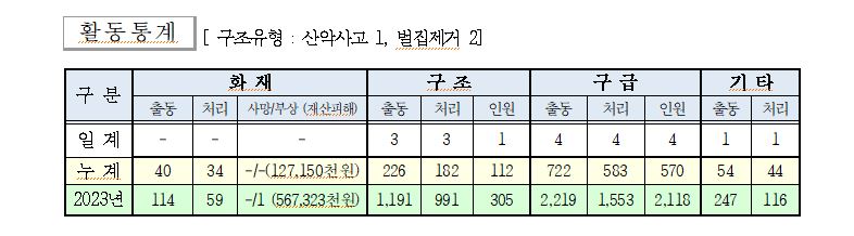 ○ 구조 3건(산악사고 1, 벌집제거 2)