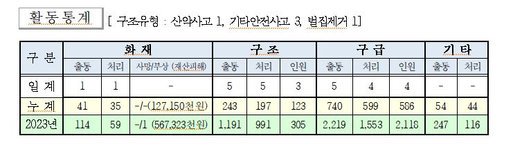 ○ 구조 5건( 산악사고 1, 기타안전사고 3, 벌집제거 1)