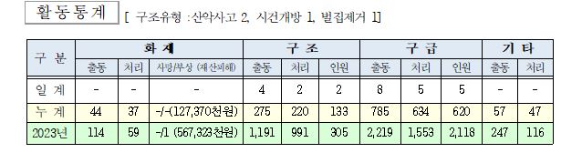 ○ 구조 5건(산악사고 2, 시건개방 1, 벌집제거 1)