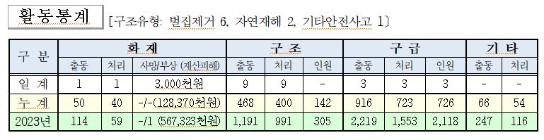 7. 23.(화) 소방활동 상황일보
