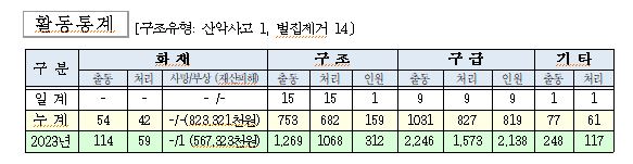 ○ 구조 15건(산악사고1, 벌집제거 14)