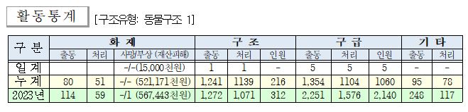 ○ 구조 1건(동물구조 1)