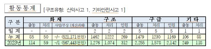 ○ 구조 2건(산악사고 1, 기타안전사고 1)