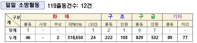 인제소방서 일일소방상황(6. 12.)