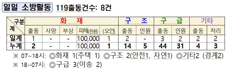 1. 11.(일) 소방활동 상황일보
