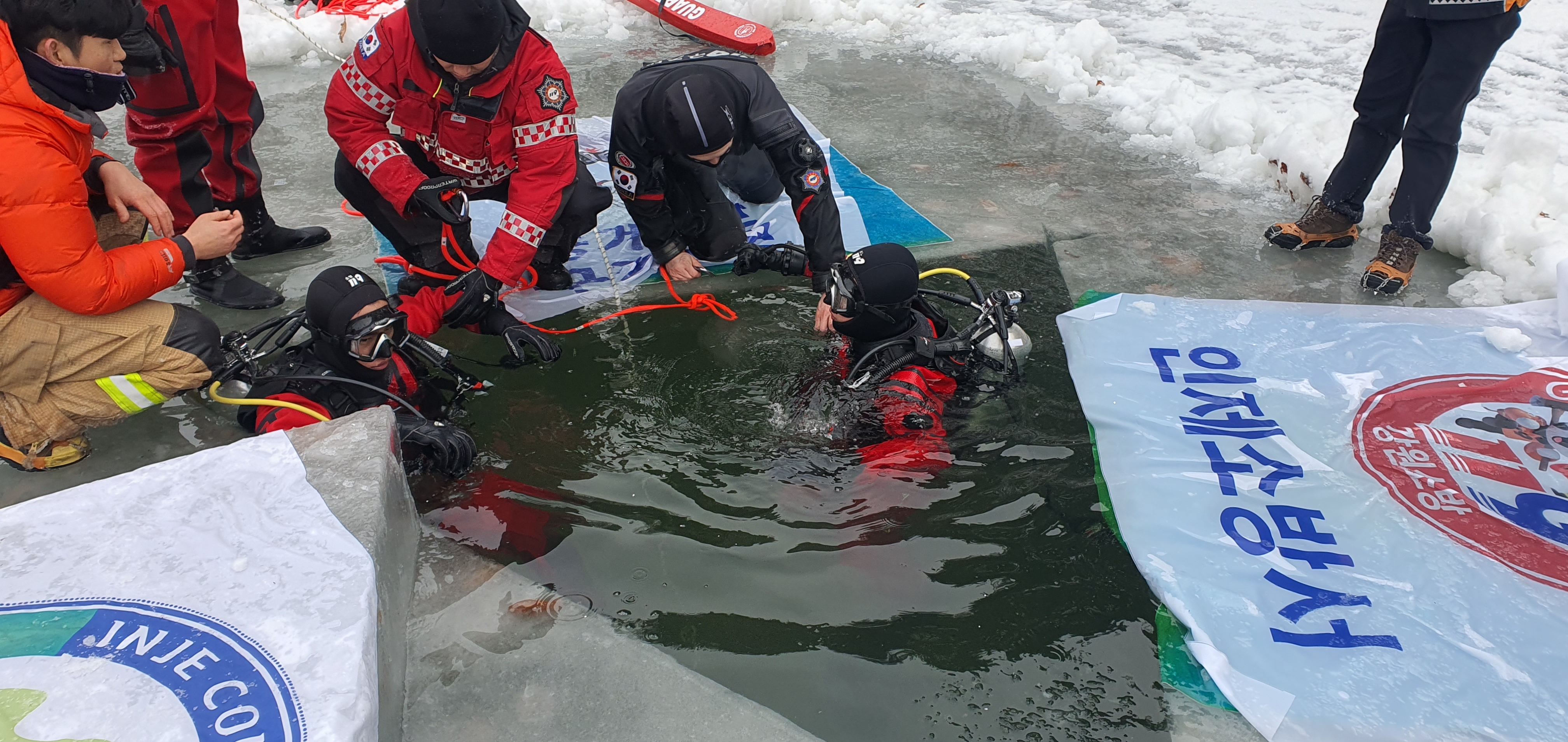 ○ 훈련은 ▲빙상구조, 현장안전관리, 수중수색기법 이론 ▲빙어축제 대비 RDC보트 등 빙상구조 장비를 이용한 인명구조훈련 ▲찬물 적응 및 얼음 밑 잠수훈련 ▲비상상황 발생 시 대처요령 터득 등의 내용으로, 인제소방서와 인제수중구조대 합동으로 진행된다.