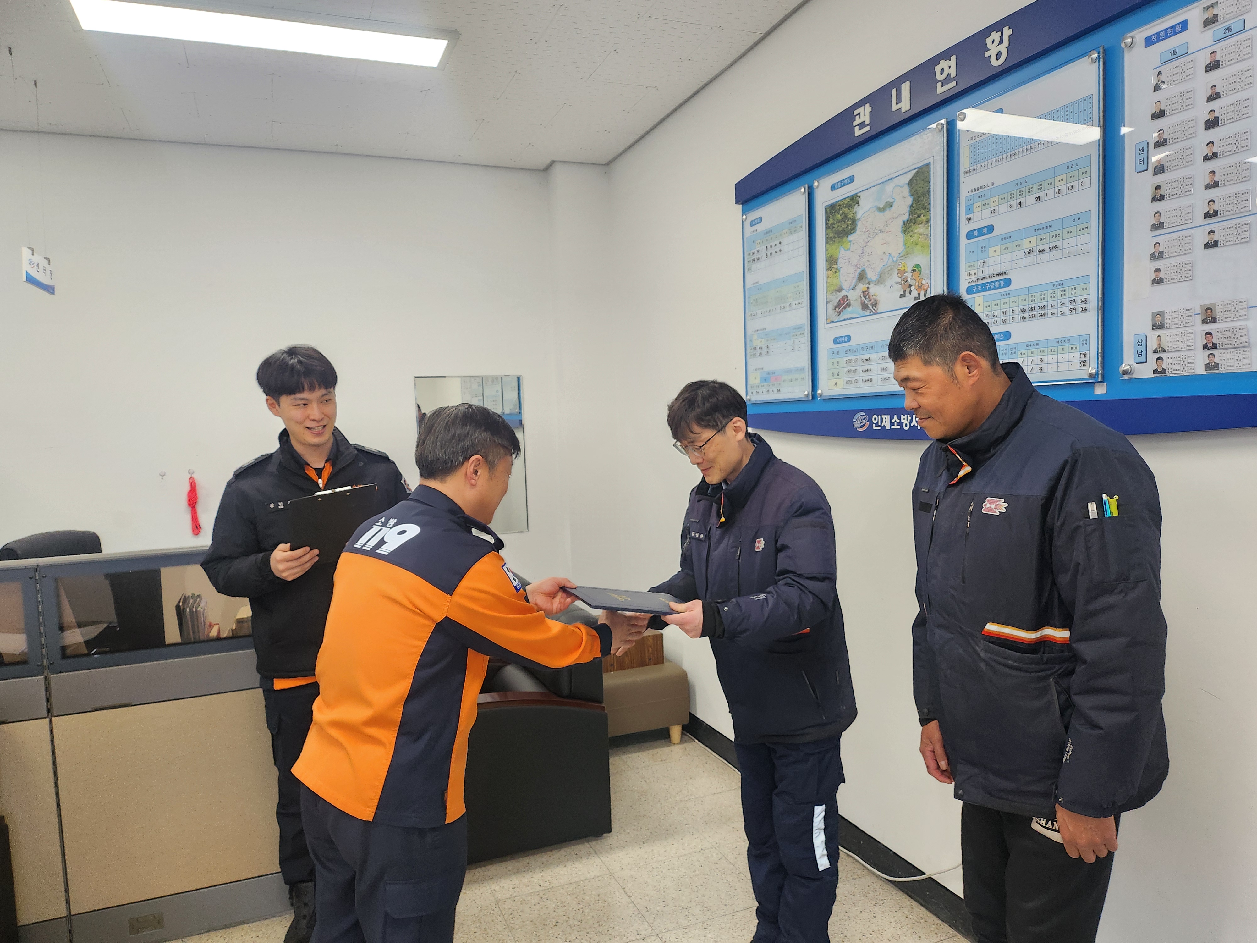 인제소방서는 7일 초기 화재 신고·진압 유공자 표창장 수여식을 진행하였습니다.