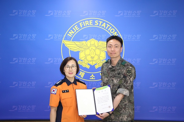 인제소방서(서장 김정희)는 27일 서장실에서‘긴급구조 종합훈련 유공자 소방서장 표창 수여식’을 진행했다고 밝혔다.
