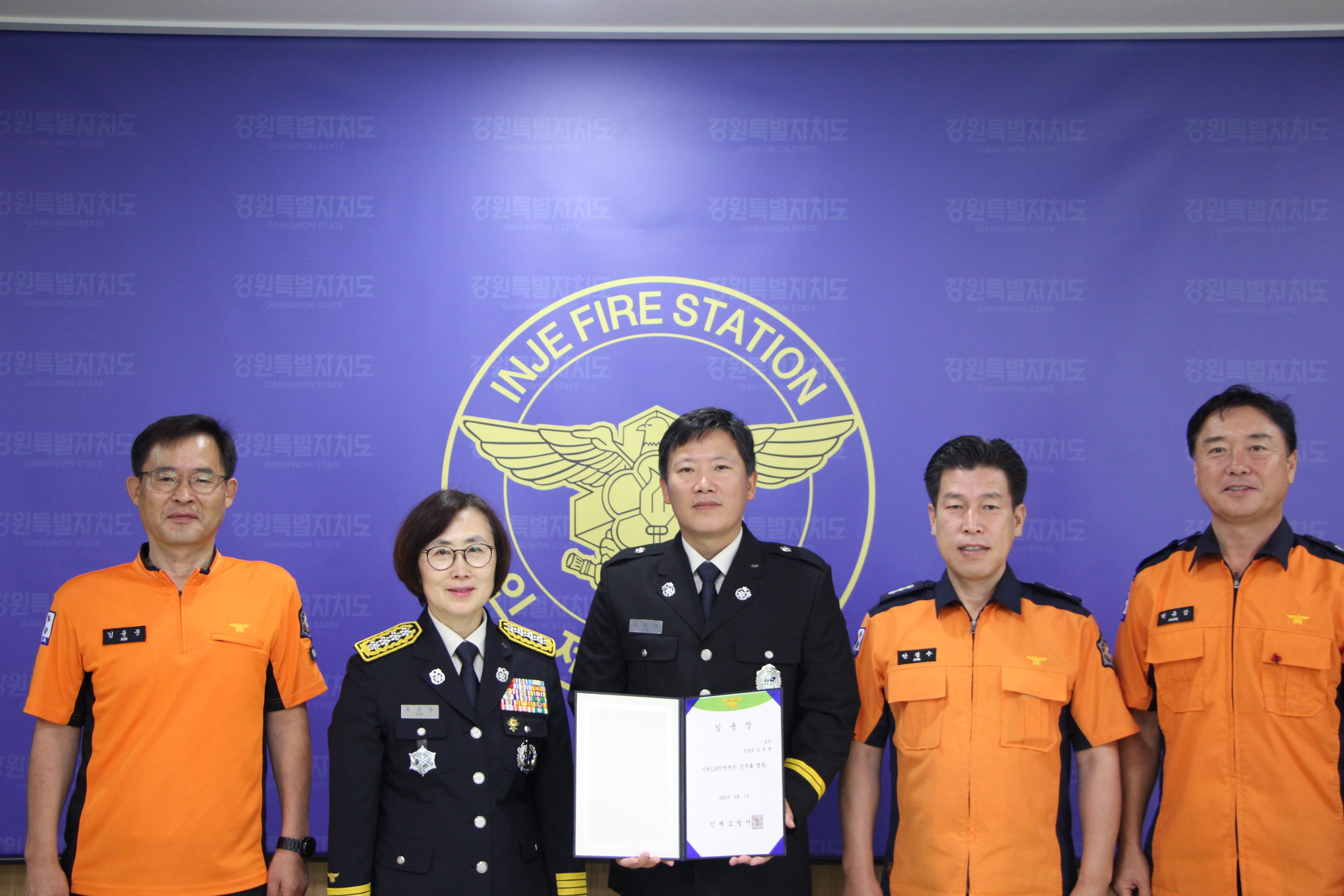 인제소방서(서장 김정희)는 1일 오전 9시 서장실에서 근속승진자에 대한 임명장 수여식을 실시했다고 밝혔다.