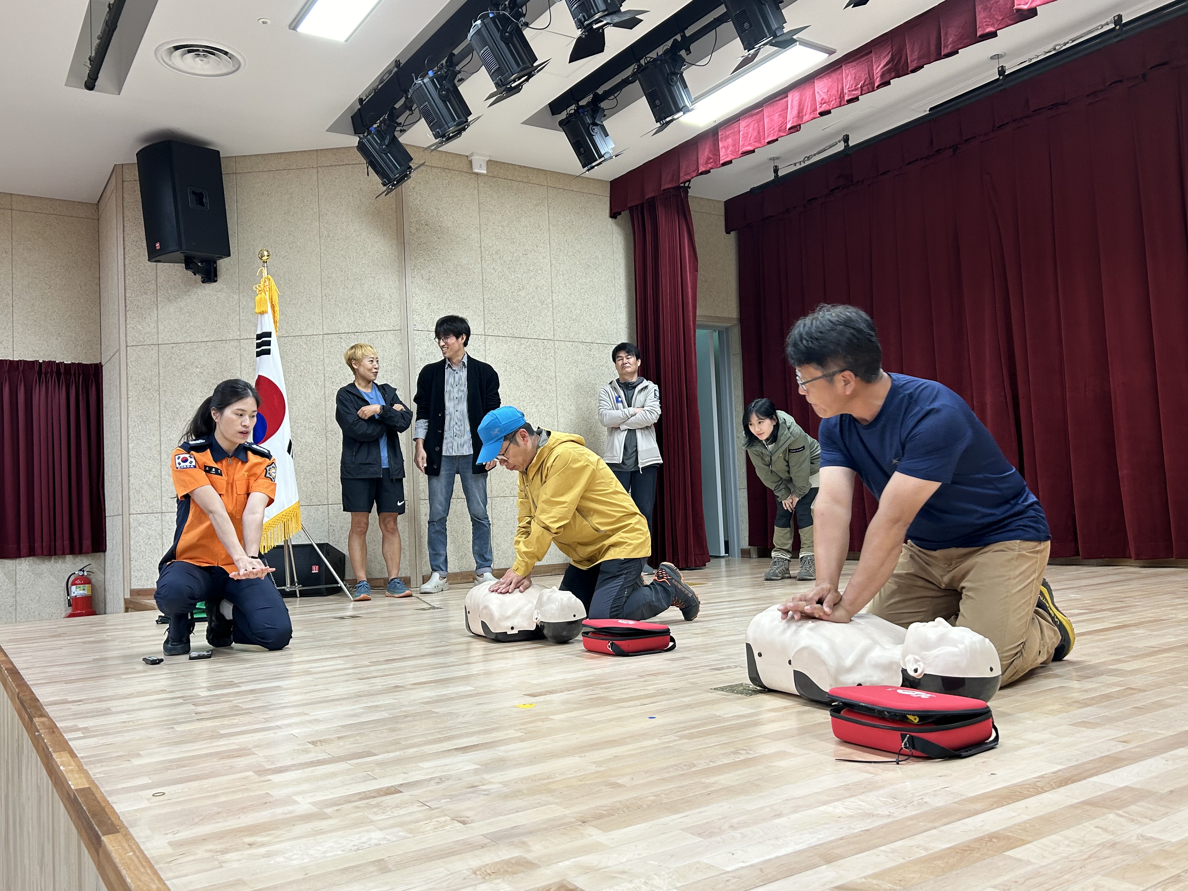 인제소방서는 옥스팜 코리아 안전팀 15명을 대상으로 ▲심폐소생술 ▲낙상, 골절 ▲탈수 등 대회 중 발생할 수 있는 안전사고에 대하여 응급처치법을 교육했다.