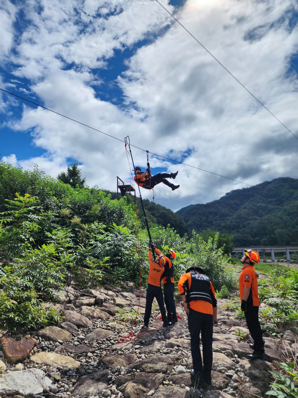 인제소방서, 집라인 안전사고 대비 합동훈련 실시
