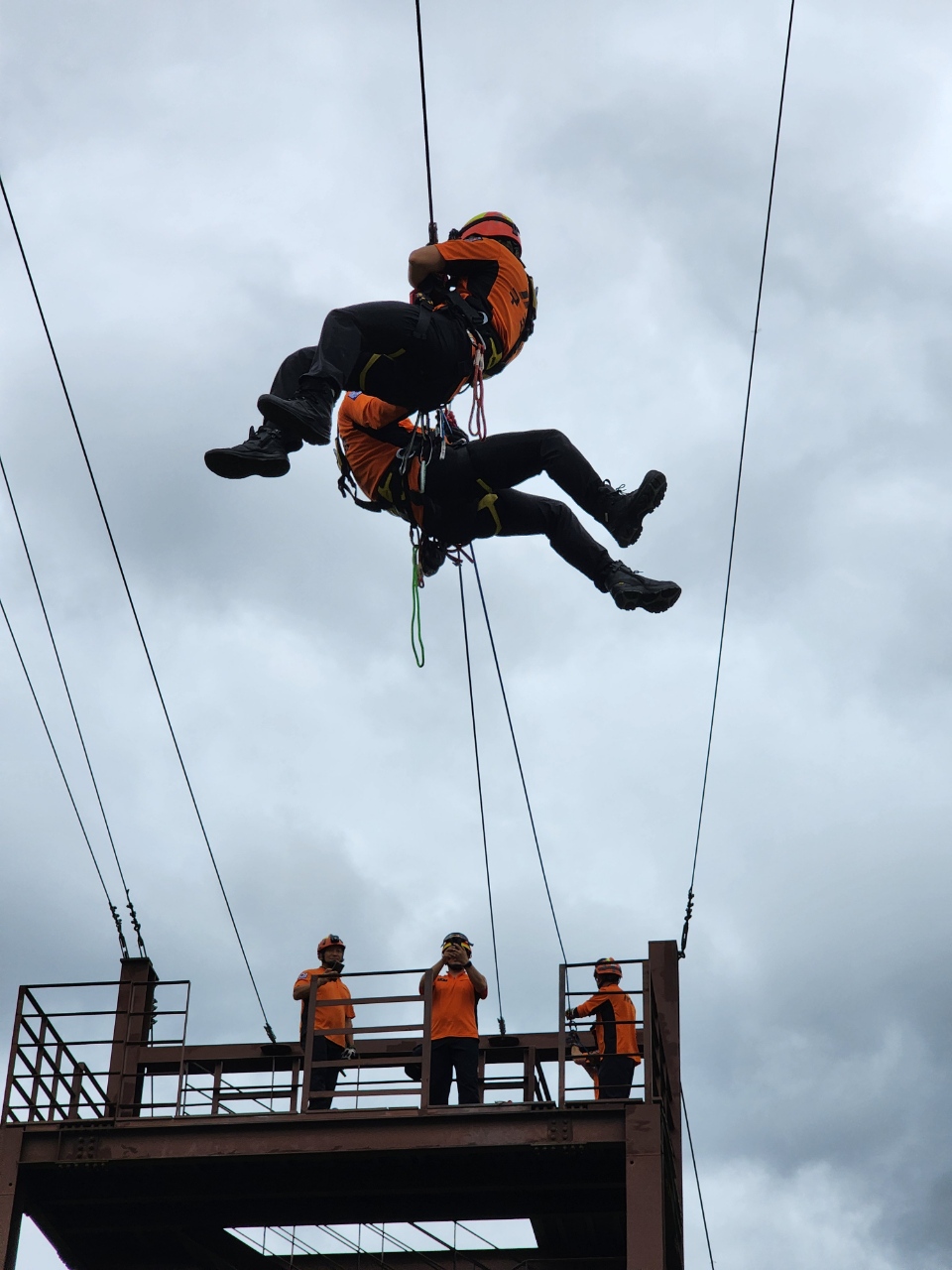 훈련 주요 내용으로는 ▲사고 발생 시 초기 대처 훈련 ▲다목적 구조기구를 이용한 고립자 구조훈련 ▲구조장비 적응성 확인 ▲구조 위험요소 확인 ▲집라인 시설 정지 안전점검 실시 여부 ▲와이어 교체 주기 확인 등이다.
