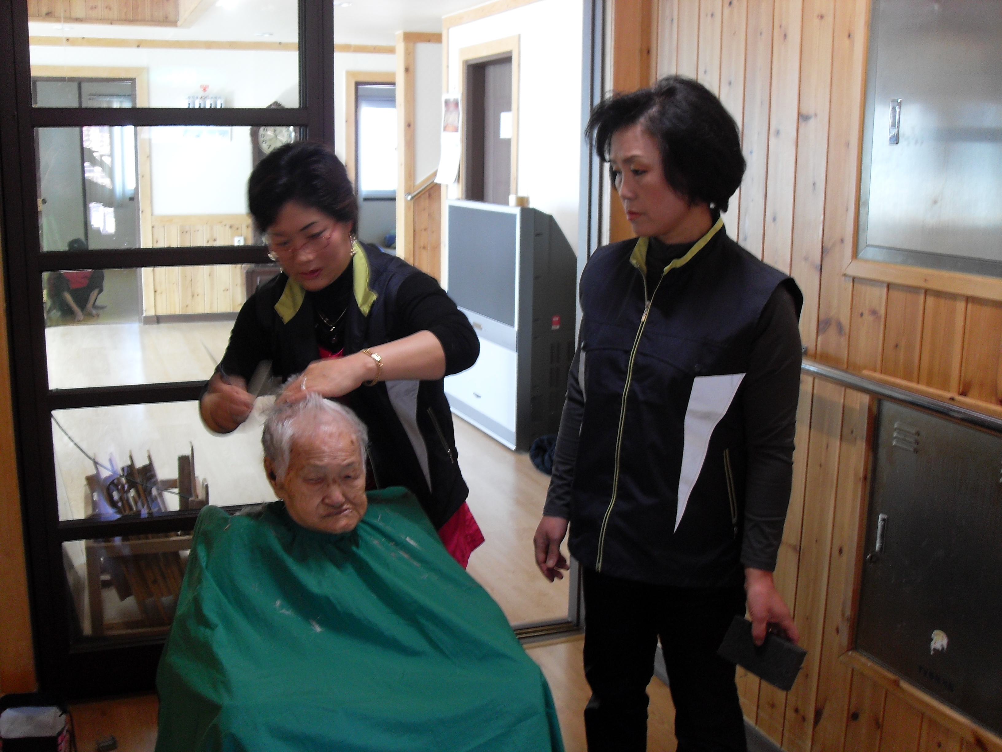 26일 송계5리 새별이 효행의 집을 방문하여 19명대상으로 이,미용봉사활동을 하였습니다.