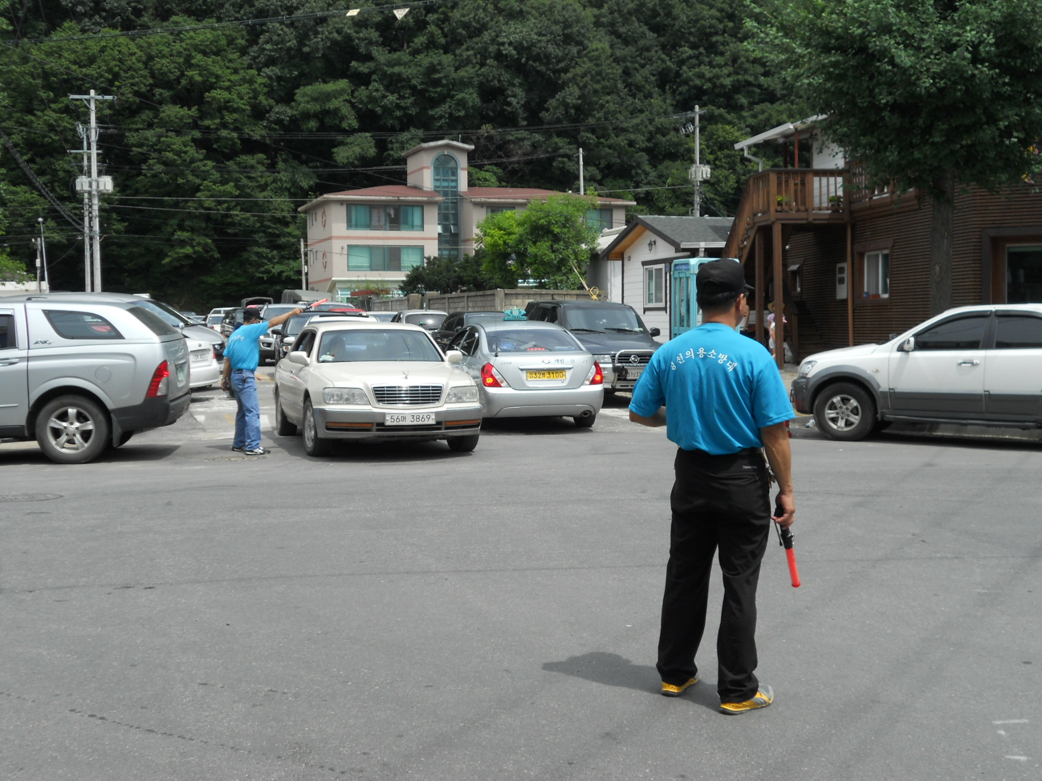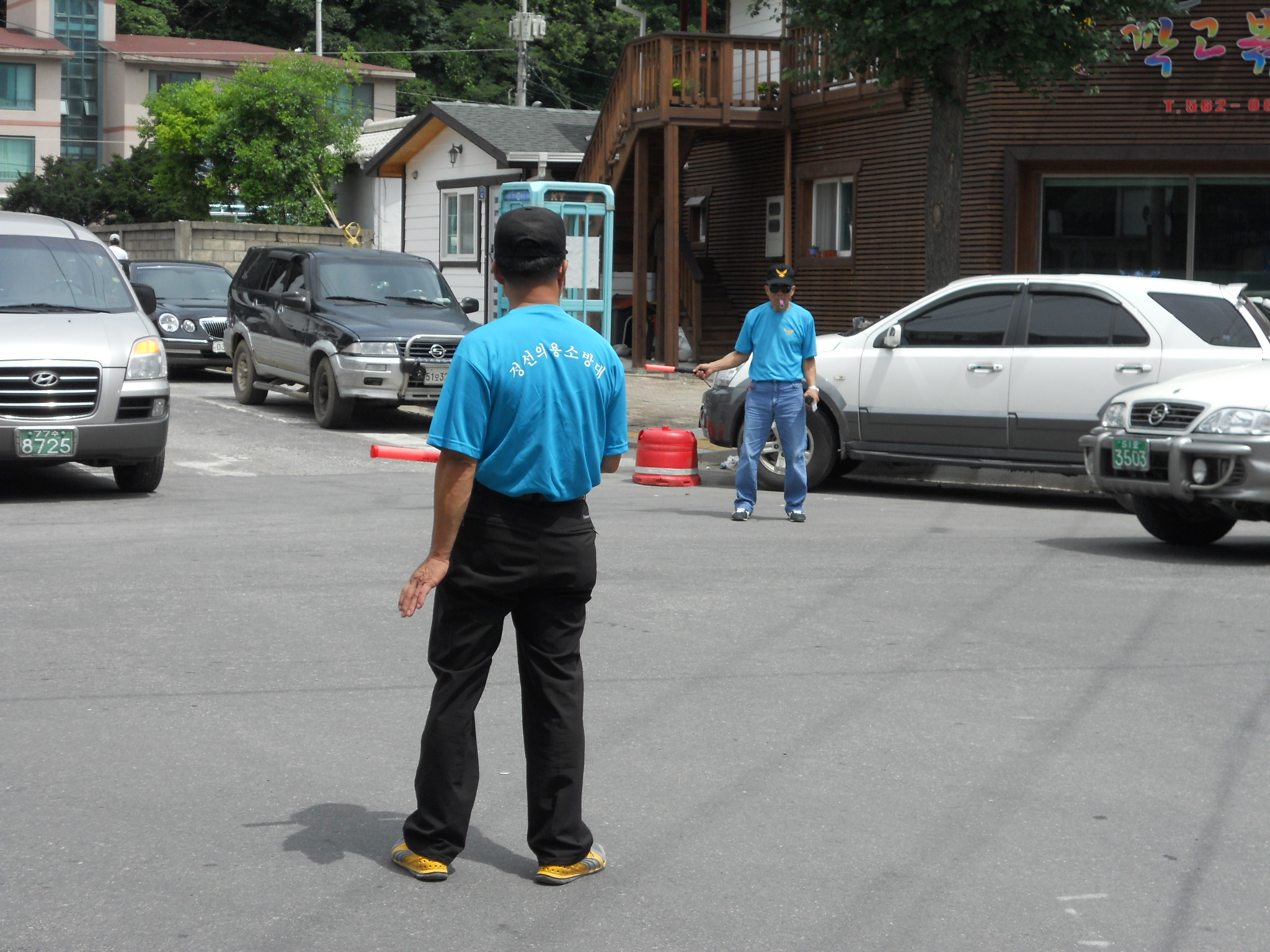 피서철 5일 장터 주변 도로 차량정체 해소를 위해1 7명의 대원이 8월6일 7일 양일간