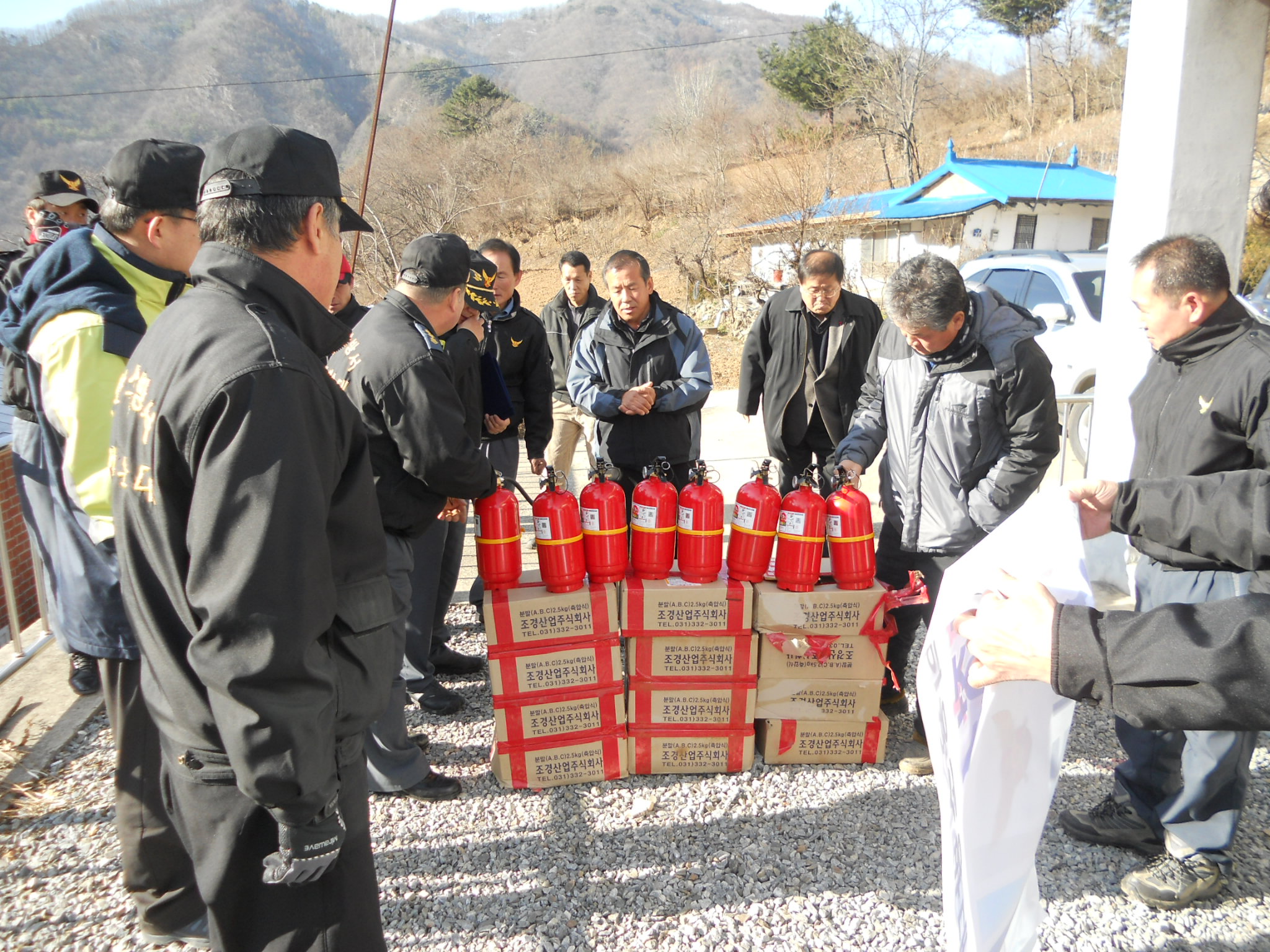 참석한 가운데 1사1촌 자매결연을 맺고 가정용소화기 25대를 기증하고 앞으로 농촌일